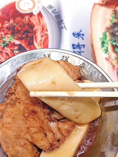 “从此排骨是排骨、年糕是年糕。”爷叔的一句话,点破了排骨年糕的精髓。是什么让两者交融在一起滋味浓郁?酱汁是关键。排骨年糕的酱汁各家有秘诀,生抽、酒、糖和水,几位“老演员”调和搅拌均匀,并准备水淀粉备用。在锅中倒油,锅热后,放入姜片炒出香味,倒入调和的酱汁。“开锅冒泡不代表可以了,还要小火慢煮,等到酱汁水分减少后尝一下味道,再分几次进行勾芡,逐步增加黏稠度,这样的酱汁才算得上是能把排骨和年糕融合在一起的好酱汁。”最后将酱汁均匀浇在排骨年糕上,一份热气腾腾的排骨年糕,也代表着人们对火热的生活期待与向往。