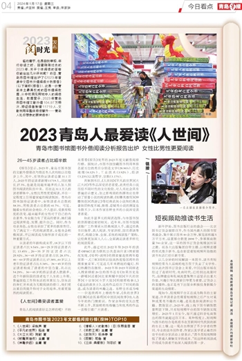 临近春节,也是自我审视、年终总结之时。回望刚刚过去的2023年,关乎个体阅读的答卷你能给出几分评判呢?近日,青岛市图书馆出炉了《2023年普通中文图书外借阅读分析报告》(以下简称《报告》),这是一份青岛本土最具权威的图书借阅数据,从中可洞见同城中人的阅读生活。数据显示,2023年青岛市图书馆文献外借104.97万册次,持证读者新增11719人,文献利用率整体持续攀升——青岛人比你想象的更爱读书!