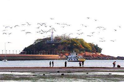 “人鸥共舞”是青岛前海沿一道独特风景线。