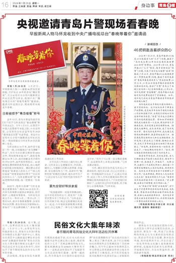 早报1月28日讯 1月27日,早报新闻人物——揣着46把居民家钥匙、守护社区16年的青岛“辖区管家”,市公安局市北分局兴隆路派出所社区民警马怀龙,收到中央广播电视总台的“春晚等着你”邀请函,邀请马怀龙到北京,现场观看央视龙年春晚。