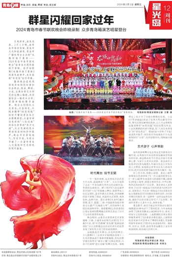 一年一度的春晚,也是青岛市民的艺术年夜饭,道道都是“主菜”。主办方选取了过去一年青岛最优秀的文化创新内容,呈现给岛城观众。群口相声《八仙过海齐贺岁》把“八仙”形象搬上舞台,铁拐李加入社区足球队,蓝采和教人打快板,诙谐幽默的段子浓缩了球迷、戏迷的生活场景,视角独特,包袱巧妙。器乐演奏《水龙吟》融合箜篌、笛子、琵琶、二胡、中国鼓和省级非物质文化遗产“九疑派古琴”,共同演绎大美国乐的独特风华。情景歌舞《让我扶着你》以情景表演和歌舞融合的形式表达了对天下父母的感恩和祝福。
