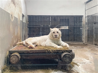 虎山内参观厅收拾得非常整洁,动物馆舍“窗明几净”。公老虎永永和妻子葵葵,以及两个孩子住在内参观厅,虽然是一家人,但还是分笼居住。“老虎是独居动物,一家人放在一起也会打仗。”饲养员叶红艳告诉记者。