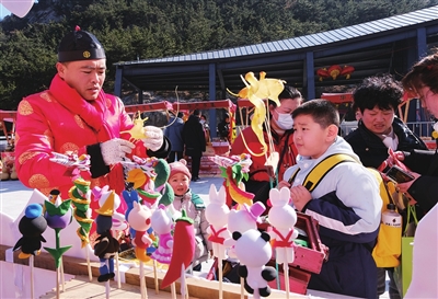 记者看到,在活动现场既有书法家书写“金榜题名”“山海奇观”赠送游客,又有皮影戏、吹糖人等民俗表演,还有螳螂拳项目省级非物质文化遗产代表性传承人王勇的精彩展示,引得游客驻足欣赏、拍手叫好,部分游客还跟着练习起来。在游戏体验区,主持人带领游客们参与猜灯谜、掷骰子、套圈跳绳等互动游戏,欢声笑语,其乐融融。 (观海新闻/青岛早报记者 姜丹宁 通讯员 杨颖超)