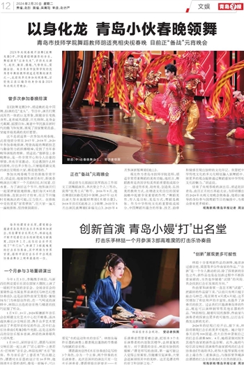每年的谭盾音乐周,谭盾都会邀请青岛优秀打击乐手林喆参加演出,而在谭盾音乐周之外,林喆也在不断开创着打击乐的新领域与新高度,2024年1月,这位打击乐手实现了“开门红”:参演了3部高难度的打击乐协奏曲,其中两部为世界首演,堪称中国打击乐手中出现在协奏曲舞台上频率最高的一位。