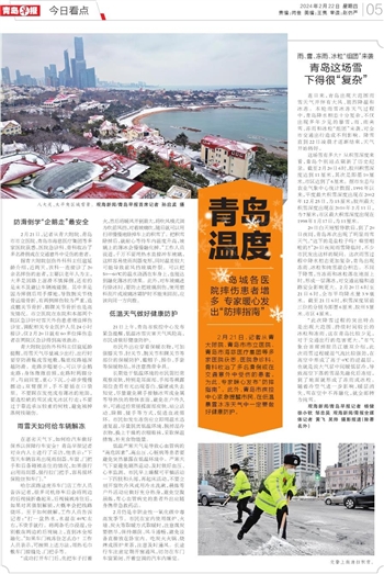 21日上午,青岛市疾控中心发布紧急提醒,低温冰雪灾害天气风险高,市民请做好健康防护。