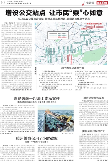经多次研究论证,结合各部门现场踏勘意见,最终决定将622路下行路线调整经福州北路右转延吉路至青田路再恢复敦化路行驶,增设青田路敦化路站。仅仅通过增加一个站点,公交车辆无需再绕行辽阳西路,敦化路、青田路附近的居民便可双向乘坐622路。一个小小的调整,给市民带来了极大的便利,变动虽小,但背后蕴含的汗水和努力却不少。此次调整方案也得到了市民的广泛赞扬,仅市民刘女士便6次来电话表扬青岛市运输事业发展中心工作人员认真负责,为民办实事。