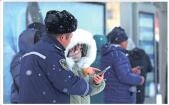 雪中“雷锋帽”志愿者为民服务。