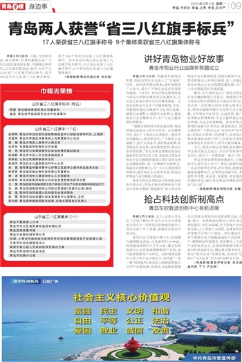 早报3月3日讯 日前,为表彰先进、树立榜样,引领和激励全省广大妇女跟党奋进新征程、巾帼建功新时代,山东省妇联决定,授予10名个人山东省三八红旗手标兵称号,授予190名个人山东省三八红旗手称号,授予100个单位山东省三八红旗集体称号。其中青岛市两人获山东省三八红旗手标兵称号,17人获山东省三八红旗手称号,9个单位获山东省三八红旗集体称号。