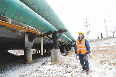 工作人员对供热管网进行日常巡检。西海岸公用集团能源公司供图