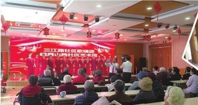 图1:峨眉山路社区艺术团走进青岛开发区社会福利中心,举行庆“三八”文艺汇演活动。