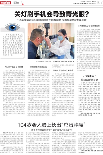 早报3月15日讯 近日,青岛市市立医院口腔医疗中心联合心内科、神经内科、麻醉手术科、重症医学科等组成多学科团队,成功为面部患癌的104岁老人切除肿瘤,并完成面部术区的修复重建,老人目前已顺利出院,青岛市市立医院对超高龄患者的救治能力再次得到了检验。