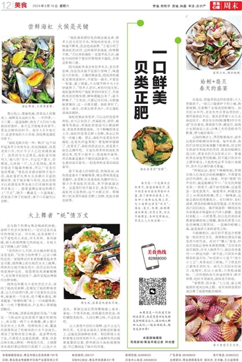 靠山吃山,靠海吃海,在青岛人的餐桌上,海鲜是永远的主角。一年四季,一日三餐,一道道海鲜,饱含了人们对大海最深的情怀。春天是万物复苏的季节,更是尝鲜的好时节。每年3月中旬左右,走进青岛的大小市场,到处都是海虹的影子。