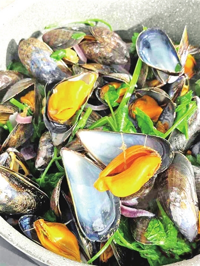 “海虹是贻贝的一种,‘贻贝’这个词听起来多少有些专业,但说到海虹、淡菜或青口贝,估计不少人已经垂涎欲滴了。虽然因为太过常见,海虹没有被列入‘海八珍’当中,不过它产量大,价格低,几块钱一斤,人人吃得起,营养价值还不输海参鲍鱼,所以广受老百姓的喜爱。”青岛汉卓酒店厨师王旭介绍,海虹喜好扎堆生长在礁石丰富的潮间带,易于被采集与利用,因此在很早以前便是世界各地人们采捕和食用的对象之一。趁着退潮去海边的礁石上“寻宝”,随手一薅就是一大盆海虹,回家洗干净了扔锅里,煮开口后就可以尝鲜。