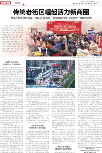 “通过加快特色商业街区的建设培育,我们不断优化营商环境、丰富商圈业态、完善配套功能,重点打造了‘南有西海岸牛街、北有隐珠天地、东有海南路、西有老城特色商街’的‘四圈多点’商圈布局,培育西海岸西部核心城区文旅融合消费场景。”徐强介绍。
