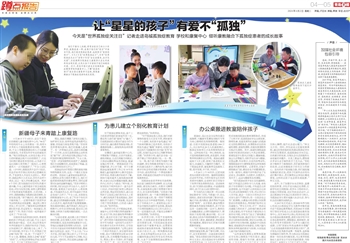 孙萍萍介绍,不同于其他特殊教育,目前孤独症患者康复教育体系仍需要完善,不同孤独症患者技能缺失的个案繁多复杂,还需要基础成体系康复教育标准。“随着孤独症孩子的长大,这一特殊群体的就业、养老去向值得全社会关注,如开设辅助性就业岗位和专业托养机构等,从各个方面保障孤独症群体生活。”孙萍萍说。