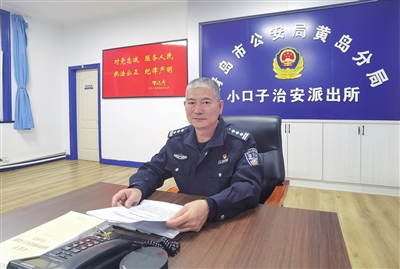 曾经戎装在身保家卫国,如今身着藏蓝守护平安。转业至公安机关后,王明凯先是从事刑事侦查工作,后又从事政工及人事工作,在黄岛公安分局政治处副主任兼人事科长的岗位上工作了10年之久。2021年,在局干部调整时,王明凯主动请缨到小口子治安派出所工作,“我当过兵,对部队有感情,到这个地方来也能够发挥自己的特长。”王明凯告诉记者。