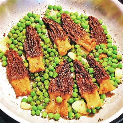 不仅长得特别,味道好,羊肚菌的香气拥有“点石成金”的能力,无论什么菜品,只要有羊肚菌的加入,就立刻变得鲜美。“法餐讲究精致,对羊肚菌的烹饪有独到之处。”孙云贵表示,最经典的吃法便是黄油煎羊肚菌,羊肚菌对半切开,放入平底锅中,用黄油煎熟。本就鲜香的羊肚菌遇到黄油的刺激,再略加海盐和黑胡椒调味,便异常美味。“吃在嘴里脆爽留香,不亚于上好的牛排。”做黄油煎羊肚菌,你还可以根据自己的口味,放入豌豆等配菜。