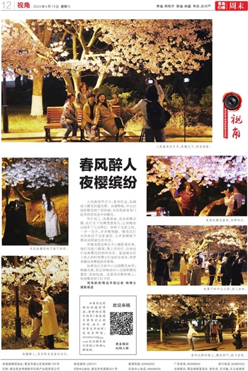 人间最美四月天,春风吹过,岛城进入樱花的盛花期。夜幕降临,中山公园的樱花树下很热闹,市民和游客专门赶来欣赏夜色中的樱花。