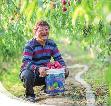 ◀油桃丰收果农笑开颜。