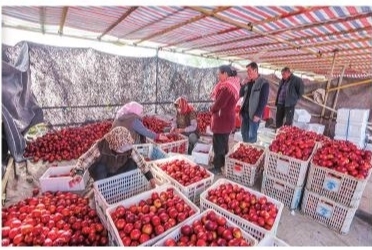 ◀油桃交易市场内。