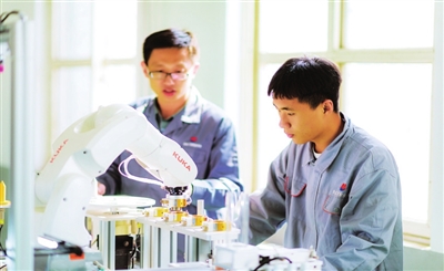 筑牢学生成才之路。学校通过多种举措助力学生向更高目标奋进。本着“立德树人,技能报国”的原则,深入分析工科特色办学定位、深挖校园文化内涵,将优秀传统文化教育作为德育工作切入点,加强和改进全环境立德树人体系,推进“忠孝修身,道义立德”德育品牌建设,将“红色铸魂、绿色培根、蓝色强技”“三色教育”融入“厚德立身、好学立行、尚技立业”办学宗旨,通过德育课程、主题教育、特色校园节、节日纪念日、社团活动、社会实践、实习实训、家校共育、校园文化等多元融汇形式,构建“课程融合、实践融合、校企融合”“三色三融”育人模式,多措并举促进学生“铸魂—润心—赋能”,推进“三全育人”工作提质创新,努力使不同性格禀赋、不同兴趣特长、不同素质潜力的中职生在全环境立德树人背景下实现出彩人生。职教高考本科达线率连年提高,学生排名优异;学校工业机器人代表队在山东省“技能兴鲁”职业大赛2人获二等奖、4人获三等奖,参加市级技能大赛19名学生获奖,工业机器人“1+X”证书通过率96%。2013年以来,学生技能大赛共获得国赛13金18银9铜,市赛33金89银138铜的优异成绩。《人民日报》刊登中职国家奖学金获奖学生优秀代表名录,2019级修宇航是青岛市唯一入选代表。