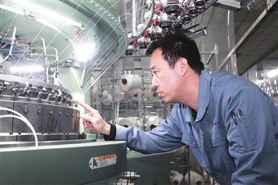 “纬编工奔跑的姿态练就了‘豹的速度’,矫健的身影每天穿梭在机台前四五万步,步履丈量间展示了精益求精的工匠精神。和智能化程度不高的过去相比,现在一名纬编工同时可以操作管理5台以上的纬编机,一天下来能织出一吨面料,铺开的长度大约是2000米,这个产量较20年前大幅度提高。把枯燥的工作坚持下去,把简单的事情做到极致,就是工匠精神。”提起宫升云,培养出四届全国纬编工技能大赛冠军的徐孝硅感触颇深。