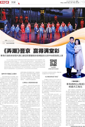 此次二度晋京演出,意义重大。业内人士介绍,晋京是一出戏夯实艺术定位的重要步骤。北京有最专业的京剧舞台和京剧氛围,北京市场获得成功,意味着一出戏真正有了“字号”。青岛市京剧院院长张欣介绍,自去年4月份至今,《弄潮》历经前后七次修改,推出三个版本。从目前的演出反馈来看,《弄潮》经受住了考验,演员的唱腔与剧情妥帖合一,剧情与舞美冷暖色调搭配精准,表演与中西结合的音乐配合娴熟,让观众沉浸在创业者的奋斗故事里。“演员表演、舞台设计、服装道具和创意念白都很用心,让我们沉浸式地感受到新时期产业工人的风采。”观众们纷纷为该剧点赞,其中不乏年轻观众,他们对这部戏的节奏、舞美、唱腔乃至视听体验发出了由衷赞美。北京观众于喜媚在接受采访时表示,这部戏特别好,“我喜欢青岛这个城市,但是对于青岛港的历史不太了解,通过这部剧让我对这里有了一个生动的了解,《弄潮》在舞美、道具等方面有创意,也让我对这个城市有了更多的热爱。”
