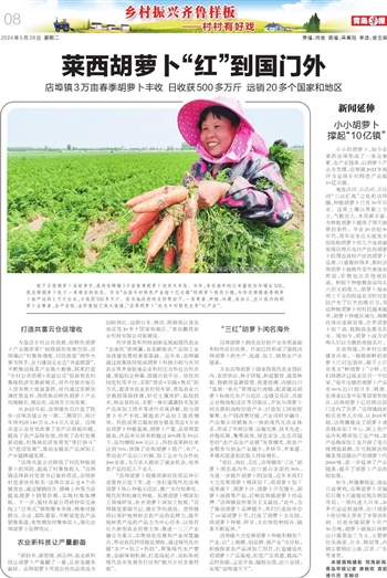 小小的胡萝卜,如今在莱西店埠形成了一条全要素、全产业链条,以胡萝卜产业为支撑,店埠镇2022年被评为全国乡村特色产业超10亿元镇。