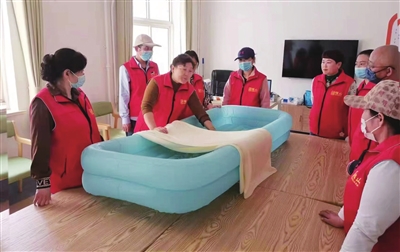所幸的是,老人的身体状况适合进行洗浴,于是李桂华和团队带上齐全的装备,再次敲开老人家的房门。“我们给一位老人洗澡的时候,一般会上三个人一起为其服务,先为浴床套上一次性套袋,再将老人小心翼翼地转移到充气洗浴床上。”李桂华给记者展示了他们的洗浴工具,充气浴床看起来和充气浴缸很相像。“把老人转移进床位以后我们再慢慢给浴床充气,充好了气再进行注水,根据老人的反馈随时进行水温、流速调整,整个过程都很舒适安全。”李桂华说。