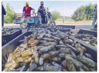 渔民把新鲜蛏子送到收购点。