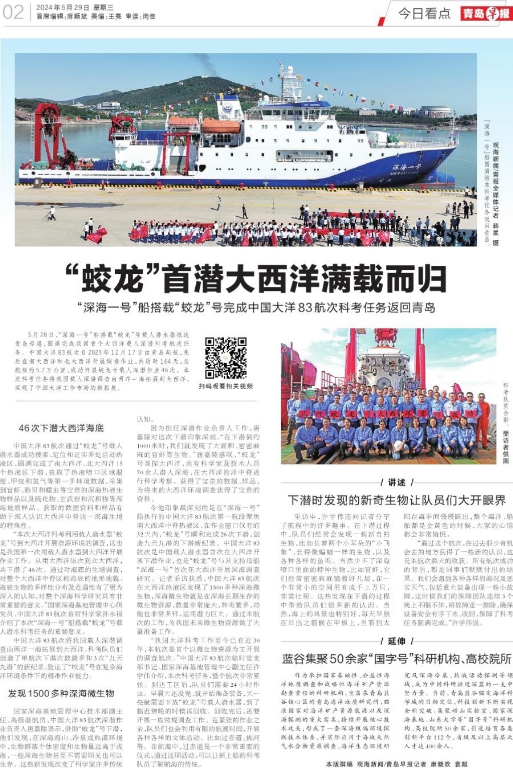 “蛟龙”首潜大西洋满载而归