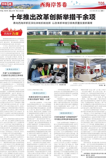 改革开路,创新破局。十年间,西海岸新区聚焦经济和生态,文化、党的建设和纪律检查等六大领域,聚焦解决最突出的问题,明确改革的战略重点、优先顺序、主攻方向、推进方式,统筹实施综合性、系统化、集成式改革,以疏堵点、攻难点、破瓶颈的改革担当和敢为人先、先行先试、勇争一流的改革气魄,在全省率先建立改革创新激励机制,创新搭建“西海岸改革访谈”“一把手改革访谈”等平台,制定重点改革任务、改革试点、微改革“三张清单”,建立区级领导领衔推进、改革事项“揭榜挂帅”、改革建议闭环落实、改革典型培树等工作机制,为国家试制度、为发展探新路。