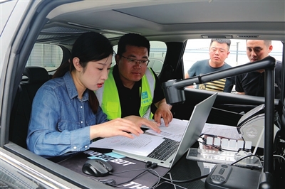 “项目审批直通车”开进工地,现场办理施工手续。胡全福 摄