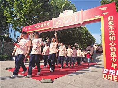 高三考生走过“状元门”。