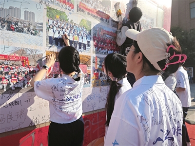 高三学子在心愿墙上写下青春誓言。