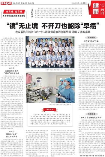 “根据消化道早癌亚专业发展需求,我们在医院内建立起多学科消化道早癌小组,确立多科室协调机制,确定筛查工作流程,组织科室内医生规范化培训。”马欢说,为了提升团队技术实力,他们强化与周边区市医院间学术交流,加强与国内外知名学术、医疗机构建立稳定的合作和沟通,通过开展消化道早癌相关学术交流,引进先进医疗技术,实现消化道早癌诊疗、服务水平与国内外先进水平接轨,提高科室消化道早癌亚专科的学术地位和医疗服务能力。