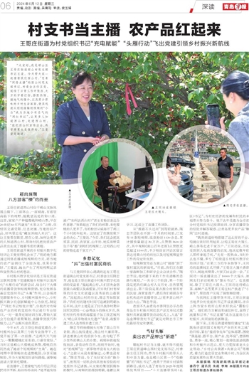 与找网红主播带货不同,王哥庄街道当地多位村党组织书记开设直播间,亲自上阵为家乡的好山好水好农品“圈粉引流”。他们的方言解说和诚信朴实,赢得了流量和订单,“书记直播”成为这里助力乡村振兴、共同富裕的新路径。