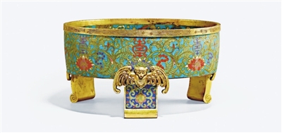 上图:清乾隆,掐丝珐琅海兽纹三足洗。