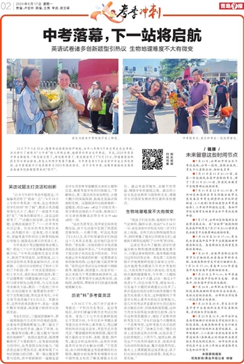 16日下午3点30分,随着考试结束的铃声响起,全市八年级9万余名考生走出考场,当天举行了被称为“小中考”的八年级生物、地理学科学业水平考试。至此,2024年青岛中考全部结束。“考完语文笑了,考完数学累了,考完英语哭了!”6月15日,伴随着英语和历史科目考试结束,青岛九年级中考落下帷幕。今年青岛有9万余名初中毕业生奔赴考场,全市普通高中计划录取率与2023年保持相当。对于今年中考,话题率最高的当属英语卷诸多创新题型带来的“惊吓”。