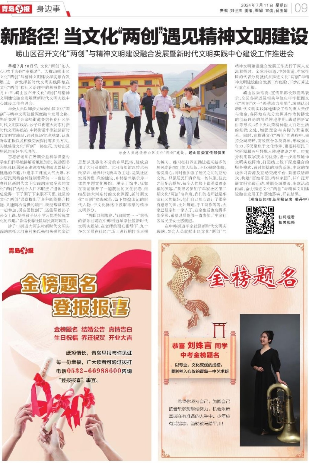 A01 头版 A02 考季冲刺 A03 今日看点 A04 加快城市更新建设 提升市民生活品质 A05 加快城市更新建设 提升市民生活品质 A06 青岛面孔 A07 都市圈 A08 发布 A09 身边事 A10 看见 A11 警戒线 A12 观点 A13 星光岛 A14 荐书 A15 地产 A16 业界
