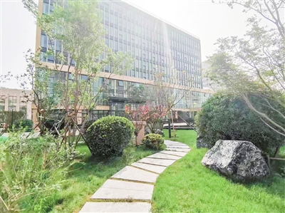 青岛生物科研交流中心项目的两栋主体大楼已全部竣工,两栋大楼一南一北错落有致,整体形成南北双地标群组塔楼形象,建筑外观质感十足。两栋楼之间的现场绿化也已全部完成,铺设了大草坪,种植了各类苗木,建设了休闲步道,茂密的行道树、精致的花坛、嫩绿的草坪展现着这一产业园区的魅力。在营造舒适的办公空间的同时,该中心还拥有配置412个车位的高标准停车场,配备了充足的充电桩。