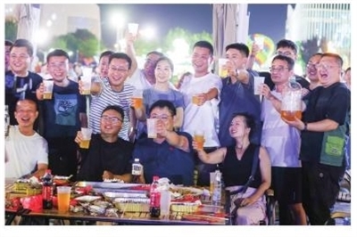 在金沙滩啤酒城和崂山会场的品饮区内,玻璃杯轻轻碰撞的清脆声响与欢声笑语交织,夏日的幸福乐章在此奏响。人们手持晶莹剔透的玻璃杯,杯中的啤酒泡沫洁白细腻如云朵,色泽诱人,酒液金黄中透着琥珀的光泽,每一口皆是沁爽香醇的享受,诱人的麦芽香气令人沉醉不已。美食区里各色小吃琳琅满目,让人忍不住驻足品尝,享受“舌尖上的青岛”……啤酒节为青岛夏日添了“一把火”。