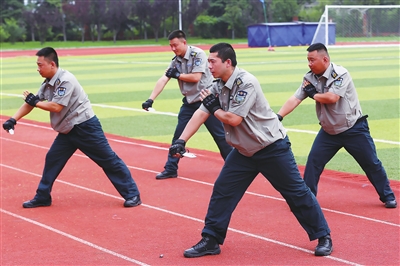 开幕式现场,5支队伍共180名保安员展示无人机操控,匕首操、摔擒技法、硬气功等保安风采展演,7-2式防暴枪操枪队列和枪支基础操作,地铁安检操、百人警棍盾牌操等5项融合演练。15家保安公司的90名保安员参与拓展项目比赛,18家保安公司的93名保安员进行了3个团体项目和4×10米往返跑、车辆指挥手势、消防技能1人1盘水带连接操作等3个个人项目的比赛。