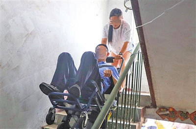 “别看这个轮椅外表平平无奇,可真是解决了我上下楼的大难题。”家住崂山区毕家村的肢体三级残疾人张峰(化名)坐在“爬楼轮椅”上,系好安全带后,妻子将其座椅靠背平放在楼梯台阶上,轮椅靠背外侧就可以实现自动“爬楼”。因为身患尿毒症,张峰每周要去医院治疗三次,这让下肢残疾、家住二楼的他每次出门都犯难。“以前上下楼,全靠我背着他。”张峰的妻子王玉(化名)颇有感触地说。不过,这一情况在其家庭完成无障碍改造后被改变。“家里的助起坐垫,可以帮助他起身做一些简单康复,上下楼可以用爬楼轮椅,不用我背着他出门,卫生间也安装上了智能马桶、增高垫,能让他自己上厕所。”王玉笑着说起家庭无障碍改造给他们的生活带来的新变化。