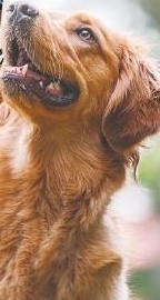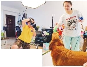 宠物摄影师王一然在给一只金毛犬拍摄照片。