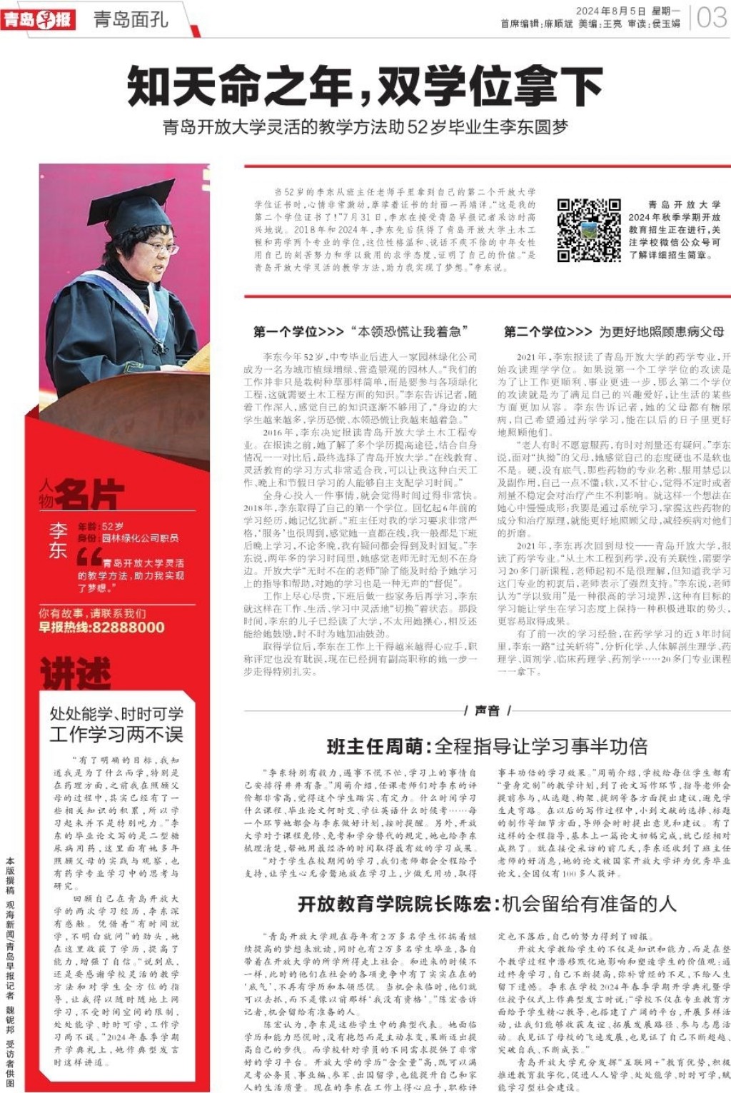 知天命之年,双学位拿下