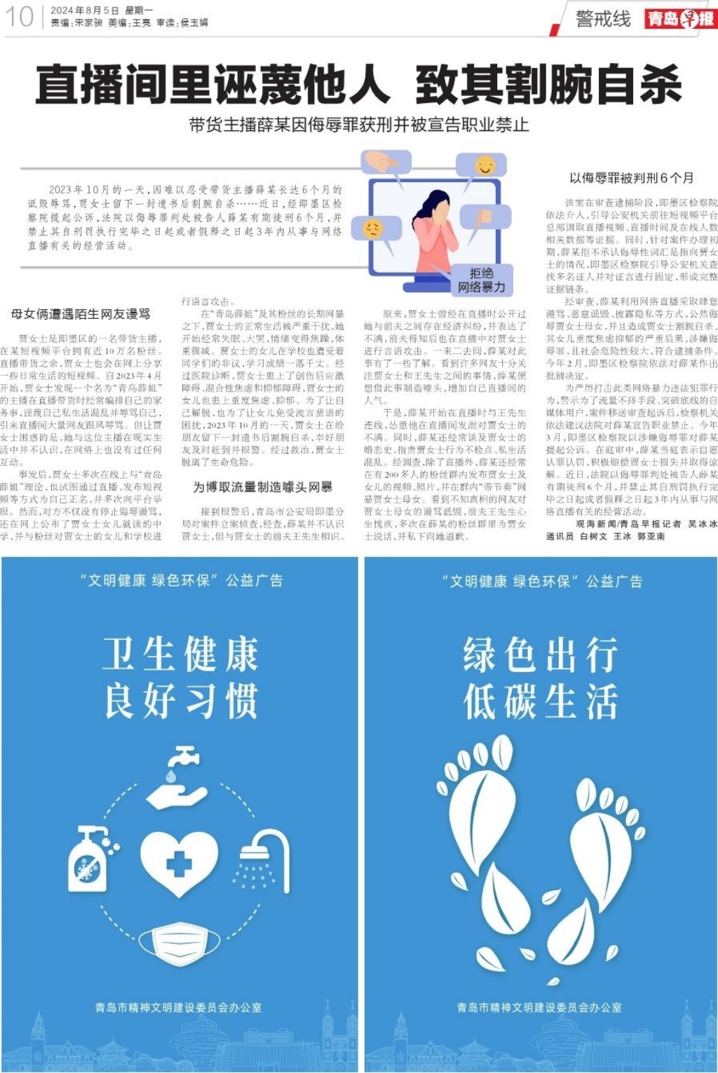 直播间里诬蔑他人 致其割腕自杀