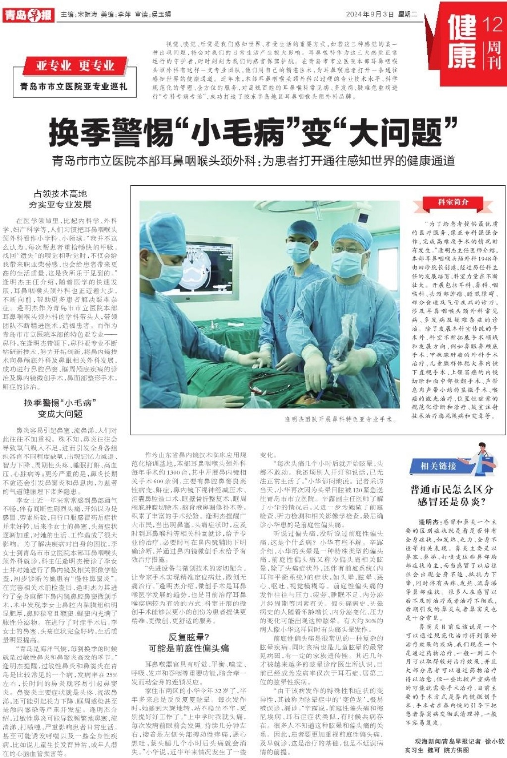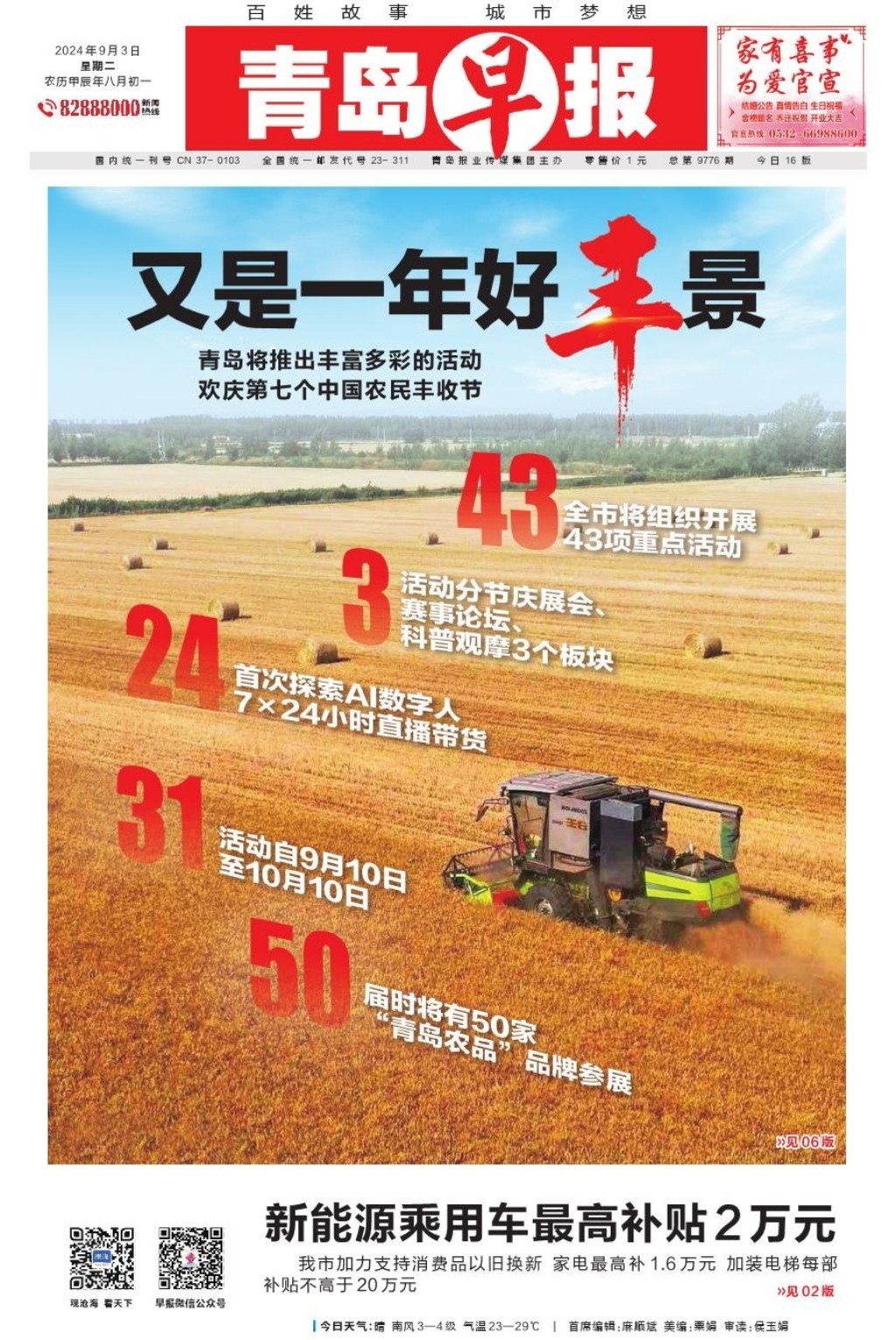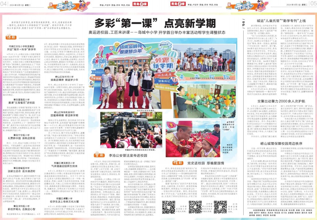 A01 头版 A02 划重点 A03 今日看点 A04 开学季 A06 发布 A07 一线探访 A08 都市圈 A09 青岛面孔 A10 深读 A11 身边事 A12 健康周刊 A13 医声 A14 常青树 A15 才艺 A16 天下