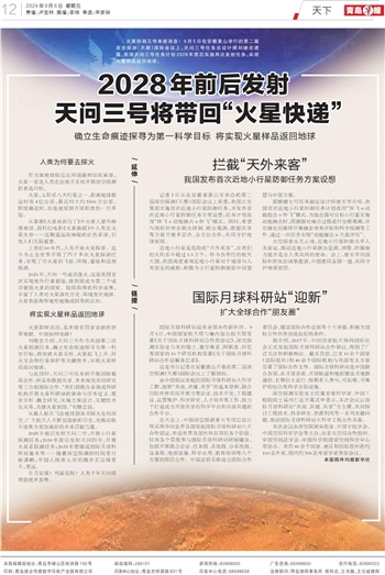 与此同时,天问三号任务将开展国际载荷合作、样品和数据共享、未来规划共同研究等三方面国际合作。“我们将联合各国或科研机构开展火星科研站的使命与任务定义、需求分析、概念研究、实施方案设计、关键技术攻关等,共建火星家园。”刘继忠说。
