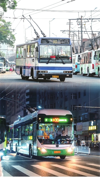 组图:左为升级前的30路公交车车型,右为升级后的车型。